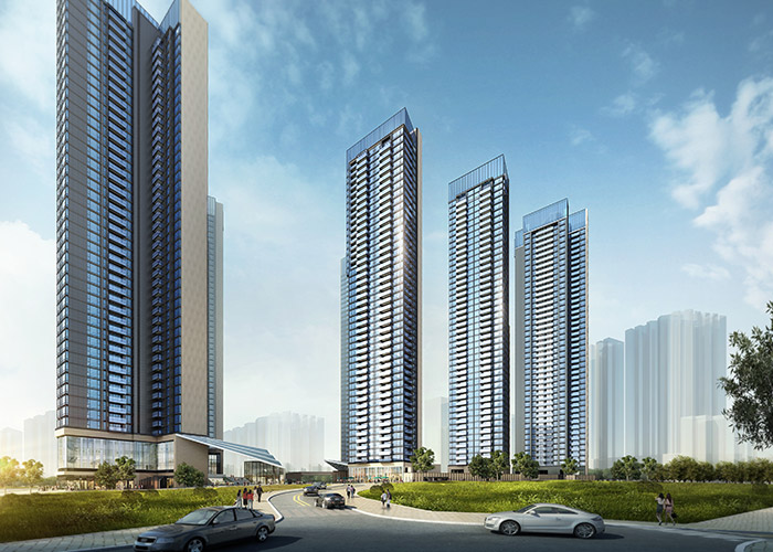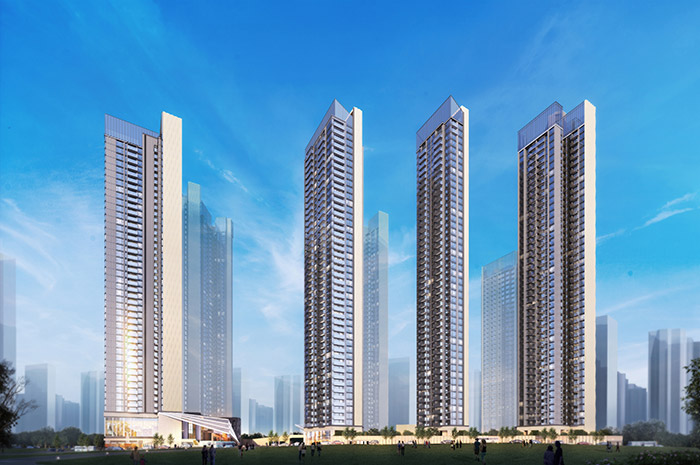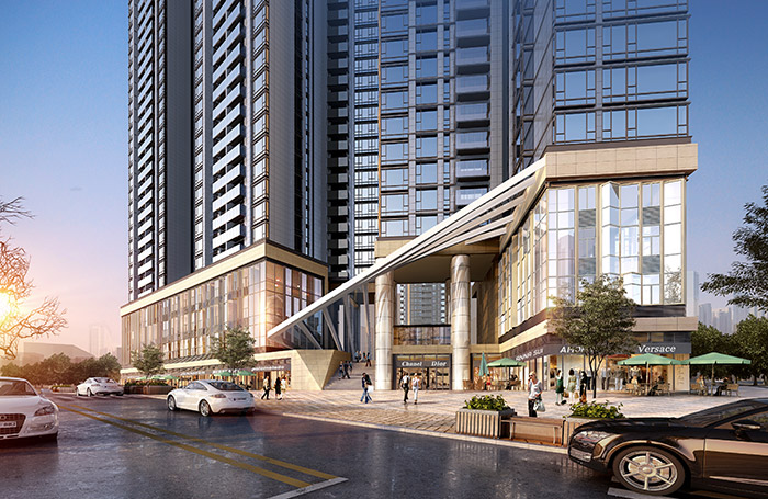 項目的規劃理念為:“中心區域,綠色環繞,純凈氛圍,藝術生活,泛會所”。一期項目開發用地31787.3㎡,建筑面積195410㎡,主要由8棟超高層塔樓組成。項目采用現代主義設計風格,經典現代立面,以鋁板和low-E玻璃為主構成。園區采用點板結合的空間布局,將傳統與現代相結合。