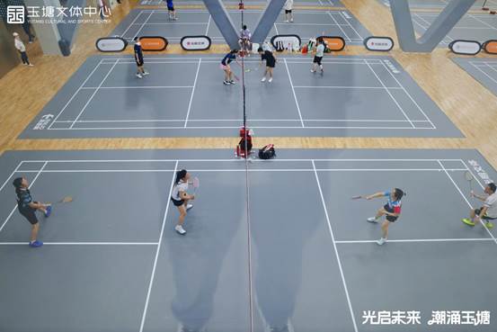 ——羽毛球館,羽民同行、公益惠普。開館當天免費開放羽毛球場館公益體驗項目,吸引市民踴躍參與,當天羽毛球館開放時長全滿預約。未來玉塘文體中心將以公益開放、品牌IP、社群共創等模式,常態化推出公益運動、文化講座及城市策展等一系列惠民項目。