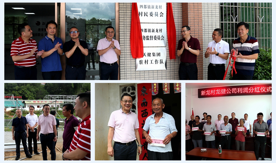 5日,何云武一行前往河源市龍川縣四都鎮新龍村,為新龍村黨群服務中心揭牌,參加龍健公司利潤分紅大會,慰問結對幫扶貧困戶,調研新龍村清水養魚產業發展情況。
