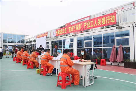 產(chǎn)業(yè)工人是公司精品工程的直接締造者,是公司高質(zhì)量快速發(fā)展的中堅力量。集團領(lǐng)導(dǎo)重視產(chǎn)業(yè)工人隊伍建設(shè),十分關(guān)心產(chǎn)業(yè)工人的生活冷暖。為貫徹落實集團領(lǐng)導(dǎo)的要求,集團工會2021年正在組織開展“五送下基層”產(chǎn)業(yè)工人關(guān)愛行動,主要包括送文化(電影)、送知識(圖書、法律咨詢)、送健康(義診)、送美麗(義剪)、送溫暖(關(guān)愛困難工人)等 。4月15日,工會關(guān)愛行動來到了光明區(qū)甲子塘水廠項目部,除了送物資外,現(xiàn)場還搭起6個服務(wù)臺,免費提供義診、義剪、法律援助等服務(wù),受到工友們的熱烈歡迎。活動現(xiàn)場,工友們有序排隊,按捺不住內(nèi)心的激動,急切地想?yún)⑴c自己意欲參加的項目。一名年齡稍大的工友表示:“自己在工地干了很多年,第一次參加這么大型的集中服務(wù)項目,非常實用,都是從我們的實際需求出發(fā),考慮得很周到,我感覺到了公司對我們工人的關(guān)心和重視,非常感謝。”