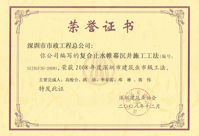 復合止水帷幕沉井施工工法(2008)
